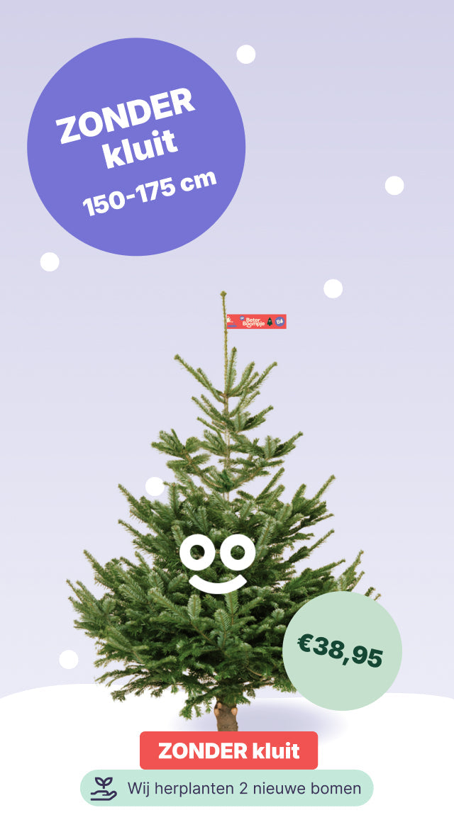 Een BeterBoompje zonder kluit is wat afgezaagd. Letterlijk. Omdat je hem bij ons koopt, planten wij daar twee herbruikbare biologische adoptieboomstekjes voor aan in ons BeterBoompje Kerstbomenbos.